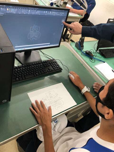 ・ノギスを使い、AutoCADでは足りない部分の製図を行った